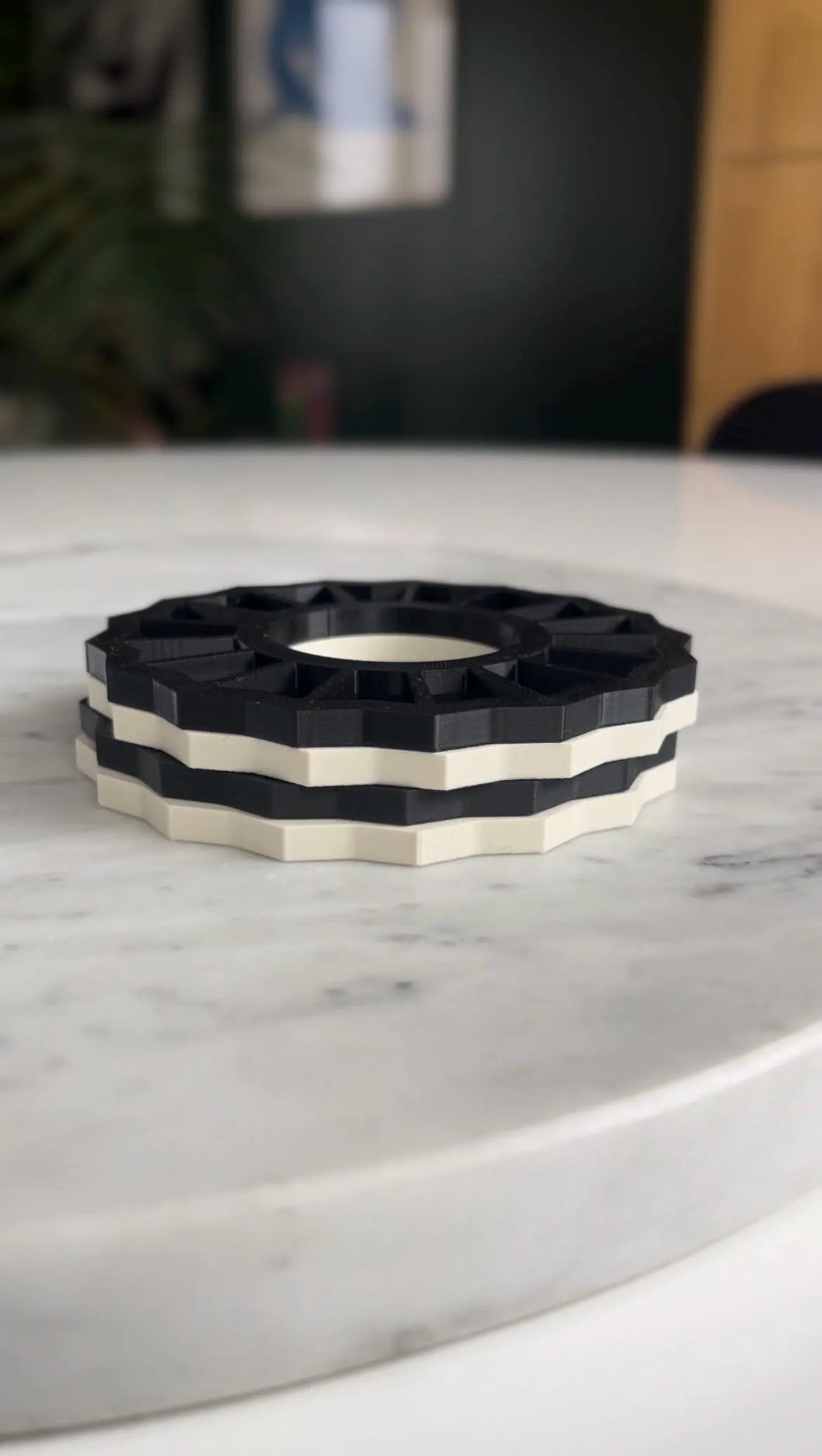 Every piece is built layer by layer using bio-based PLA and recycled PET bottles. What starts as digital design becomes something tactile and personal: a coaster, a sculpture, a reminder to slow down.