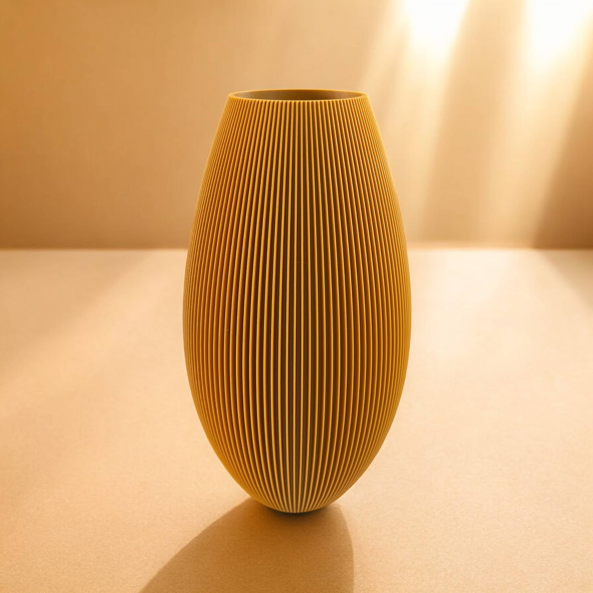 It takes little over nine hours to create a medium Rise vase. A process in which no material is lost and the vase is created layer by layer.